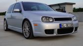 The car is finished in Reflex Silver and features R32-specific bumper covers…