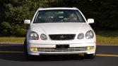 This 2000 Lexus GS400 is finished in Crystal White over Ivory Leather and powered by a 4.0-liter V8 paired with a five-speed automatic transmission. Equipment includes 17″ alloy wheels, steering-wheel-mounted shift controls, a power glass moonroof with a sunshade, HID headlamps, fog lamps, a body-colored spoiler with an integrated brake lamp, heated front seats and mirrors, dual-zone automatic climate control, a Nakamichi audio system, and an in-dash six-disc CD changer.