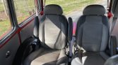The black-painted floor features wood slats, and shoulder belts are equipped for the rear occupants.
