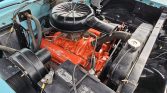 This 1957 Chevrolet Bel Air two-door convertible is finished in blue over a coordinated two-tone interior and is powered by a 283ci V8 paired with a two-speed Powerglide automatic transmission. The car was refurbished at some point under prior ownership and is equipped with a power-operated white soft top, a blue top boot, 14″ steel wheels, power steering, a split-folding front bench seat, and a push-button radio.