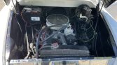 The modified 350ci V8 features a four-barrel carburetor, an Edelbrock Performer RPM intake manifold, headers, HEI electronic ignition, a custom dual exhaust system, and a finned aluminum air cleaner and valve covers.