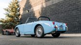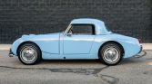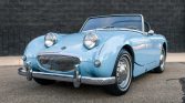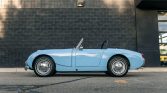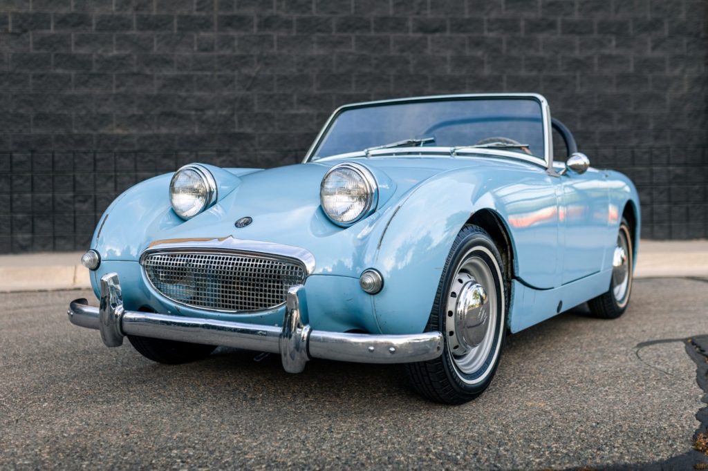 This 1959 Austin-Healey Sprite is said to have been stored from 1987 until a 2021 refurbishment, which is said to have been carried out by Smashing British Cars in San Francisco, California. The car features a period Judson supercharger, a body-colored hardtop, a roll bar, bumpers, and a wood-rimmed steering wheel.