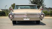 The Series 62 was restyled for 1959 with updated front and rear grilles, a Series 62-specific single-row rear grille, upright fins, and dual-bullet tail lights. This example was ordered in Beaumont Beige (44) with a white (12) roof, and the seller states that the bodysides were refinished at an unknown point during previous ownership. Additional equipment includes a left-side mirror, a power antenna, fender skirts, and reverse lights.