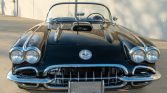 This 1959 Chevrolet Corvette was refurbished and modified during prior ownership, with work including refinishing the exterior in black with white coves as well as installation of a fuel-injected 5.7-liter L98 V8 and a six-speed manual transmission. Equipment includes power steering, a dual exhaust system, staggered-width 15″ American racing wheels, updated suspension components, and four-wheel disc brakes.