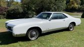 This 1966 Buick Riviera GS is finished in Riviera White over a black vinyl interior and is powered by a 425ci nailhead V8 paired with a three-speed automatic transmission. Features include air conditioning, Electro-Cruise control, a console with sport shifter, chrome bumpers and trim, turbine spinner wheel covers, concealed headlamps, power steering, power brakes, and a push-button AM/FM radio. The car is said to have been acquired from the original owner’s family by the seller in 2021.