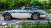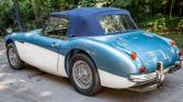This 1967 Austin-Healey 3000 BJ8 Mk III was acquired by the seller in 1993 and was reportedly refurbished in the early 2000s by Healey Werks of Lawton, Iowa. The car is finished in blue and white over blue leather and is powered by a 2.9-liter inline-six paired with a four-speed manual transmission with overdrive. Features include chrome bumpers with overriders, 15″ knock-off wire wheels, a blue soft top, an AM radio, and a trunk-mounted Alpine stereo with a CD changer. The seller states that the speedometer and fuel gauge were rebuilt in 2017 and that the battery was replaced in 2021.