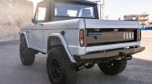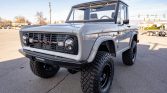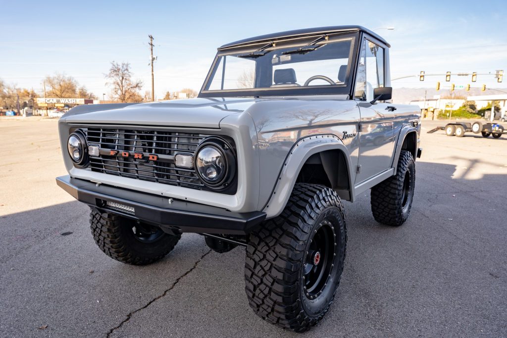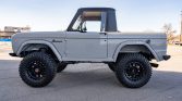 This 1968 Ford Bronco was acquired by the seller in January 2016 as a non-running project, and a subsequent three-year refurbishment was completed in 2021. Work included rust repair, repainting the truck in gray, renewing the interior with Tom’s Offroad Premium black bucket seats, and installing a rebuilt 5.0-liter V8 and four-speed Ford AOD automatic transmission. Additional equipment includes a two-speed transfer case, a half-cab roof, Holley Terminator X engine management, a lifted suspension with Bilstein shocks, 17″ Method wheels wrapped in 35″ tires, aftermarket bumpers, LED lighting, power steering, front disc brakes, and a RetroSound stereo with Bluetooth connectivity.