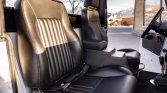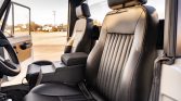 The cabin features replacement black bucket seats along with matching door panel inserts and carpets sourced from Tom’s Offroad. Equipment includes a locking center console, wing windows, lap belts, a tilt steering column, and a RetroSound stereo with a hidden antenna connected to Pioneer speakers in the footwells. The heater box hardware and switchgear have been replaced.