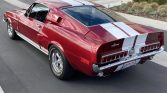 This 1968 Ford Mustang Fastback was modified in the style of a GT350 in the early 2000s and underwent a mechanical refreshment in 2018. Work included rebuilding the four-speed manual transmission, replacing the clutch assembly, flywheel, and steering column, performing electrical repairs, and installing a power-assisted rack and pinion steering gear along with Hotchkis suspension components. The car is finished in burgundy with white stripes over a black interior, and power is provided by a 302ci V8 that has been modified with an Edelbrock intake manifold, tubular headers, and a dual exhaust system with Flowmaster mufflers. Additional modifications include polished Torq Thrust wheels, ProCar bucket seats, a roll bar, and a Hurst shifter.