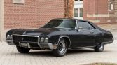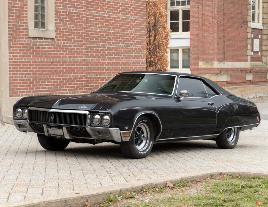 This 1970 Buick Riveria GS is finished in black over a black cloth and vinyl interior and is powered by a 455ci V8 paired with a three-speed automatic transmission. Features include a black vinyl roof, a Positraction differential, 15″ Buick rally wheels, power steering and brakes, quad-headlights, chrome bumpers, fender skirts, air conditioning, and an AM/FM radio. The seller reportedly acquired the car in April 2021 after it had been stored for a year under previous ownership.