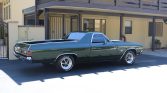 Work on this 1970 Chevrolet El Camino including a repaint in green with white stripes and the installation of a replacement 402ci V8 paired with a four-speed manual transmission. The suspension and brakes were overhauled, the interior was re-trimmed in black, and bucket seats from a late-model Camaro SS were installed according to the seller. Equipment includes a cowl hood, 15″ American Racing VN501 wheels, front disc brakes, a Weiand intake manifold, and a Holley four-barrel carburetor.
