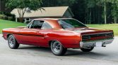 This 1970 Plymouth GTX hardtop is finished in Burnt Orange over black and powered by a replacement 440ci V8 paired with a four-speed manual transmission and Dana 60 rear axle. Features include front bucket seats, fog lamps, hood pins, the A33 Track Pak option, an Air-Grabber hood, painted hood stripes, reflective vinyl side stripes, a Hurst Pistol-Grip Shifter with a wood knob, a dual exhaust system, and 15″ Magnum 500 wheels.
