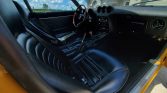 The cabin features bucket seats trimmed in black vinyl with a matching dashboard, door panels, and carpets. Amenities include a locking glove box, center console, and a wood shift knob. Work performed during the refurbishment is said to have included replacing the carpets and reconditioning the dashboard.