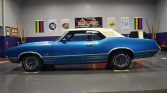 This 1971 Oldsmobile 442 convertible is finished in metallic blue with white stripes over blue upholstery and is powered by a replacement 455ci V8 paired with a three-speed TH400 automatic transmission. Additional equipment includes a power-operated white soft top, 14″ rally-style wheels, power-assisted front disc brakes, a ram-air hood, power-steering, air conditioning, a push-button radio, and an eight-track player. The seller acquired the car in November 2021, and subsequent work is said to have included reupholstering the…
