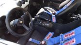 The three-spoke MOMO steering wheel fronts a 160-mph speedometer and a tachometer with a 7k-rpm redline. Auxiliary gauges for coolant temperature, oil pressure, amperage, and fuel level are housed in the center stack, along with a Quartz lap timer. The owner states that the auxiliary gauges are inaccurate and in need of replacement. The five-digit odometer shows 47k miles.