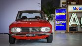 The 1,584cc narrow-angle V4 is equipped with dual Solex carburetors and a yellow-finished valve cover. Factory-rated output was 113 horsepower at 6,000 rpm, which is sent to the front wheels through a five-speed manual transaxle.