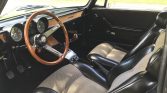 The wood-rimmed Personal steering wheel frames Jaeger instruments including a 140-mph speedometer, a tachometer, and gauges for fuel level and coolant temperature. The five-digit odometer shows 45k miles and has reportedly rolled over. Total mileage is unknown. Approximately 30k miles were added under current ownership.