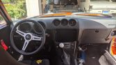 The exterior was reportedly refinished in Lamborghini Arancio Ishtar and has been fitted with front and rear tow points, a Xenon front air dam, a BRE rear hatch spoiler, “5.7L LS1” badging, and a 1973-specification tail panel, bumpers, and turn signals. The antenna has been removed and the seller notes some blemishes on the driver’s window as well as rock chips on the front end.