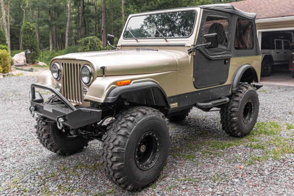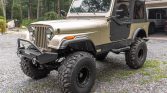 This 1977 Jeep CJ-7 is a modified example that was acquired by the current owner earlier this year. The replacement body has been painted in metallic beige and fitted to a Throttle Down Kustoms frame, and power is supplied by a 304ci V8 that has been fitted with an aluminum radiator, a Painless Performance wiring harness, and an Edelbrock air cleaner, intake manifold, and ribbed valve covers. Power is sent to the rear or all four wheels…