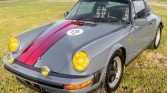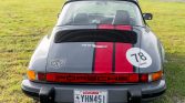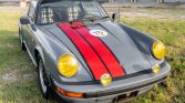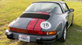 This 1978 Porsche 911SC Targa is powered by a 3.0-liter flat-six paired with a five-speed manual transaxle and finished in steel blue with red stripes over a black interior with plaid seat inserts. Equipment includes a removable targa top, auxiliary driving lights, 16″ Fuchs wheels, a wood-rimmed Moto-Lita steering wheel, and a Sony stereo with a CD changer. The car was first sold in March 1978 in Braunschweig, Germany, and the seller acquired it from a dealer…