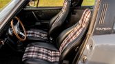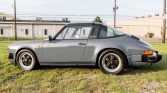 This 1978 Porsche 911SC Targa is powered by a 3.0-liter flat-six paired with a five-speed manual transaxle and finished in steel blue with red stripes over a black interior with plaid seat inserts. Equipment includes a removable targa top, auxiliary driving lights, 16″ Fuchs wheels, a wood-rimmed Moto-Lita steering wheel, and a Sony stereo with a CD changer. The car was first sold in March 1978 in Braunschweig, Germany, and the seller acquired it from a dealer in Miami in 2014. Subsequent service included overhauling the engine and air-conditioning system in addition to replacing the clutch, wheel bearings, ball joints, and tie rods.