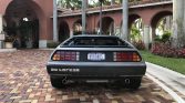 This 1981 DeLorean DMC-12 features brushed stainless-steel bodywork over black leather upholstery and is powered by a 2.85-liter V6 paired with a three-speed automatic transaxle. Equipment includes gullwing doors, a louvered rear window cover, staggered-diameter alloy wheels, air conditioning, and a cassette stereo. The car was delivered new to Import Cars of Greenwich, Connecticut, and has resided in New York and Florida after it was acquired by the seller in December 1998.