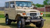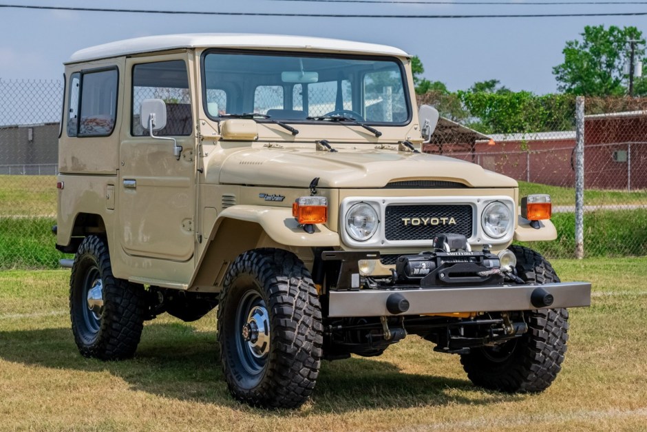 This 1982 Toyota Land Cruiser FJ40 is said to have spent time in Venezuela, and it was reportedly refurbished and imported to the US in 2024. The truck is finished in beige over tan upholstery and is equipped with a removable hardtop, a Smittybilt winch, 15″ steel wheels, Aisin manually locking front hubs, power steering, and Old Man Emu shocks. Other features include air conditioning, a heater, an aftermarket stereo, and rear jump seats. Power is provided by a 4.2-liter 2F inline-six linked with a four-speed manual transmission and a dual-range transfer case.