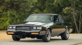 This 1986 Buick Grand National is finished in black over a two-tone interior, and during prior ownership a turbocharged and intercooled 6.2-liter LS3 V8 was installed and paired with a Tremec TR6060 six-speed manual transmission. Additional modifications include a Fuel Air Spark Technology fuel-injection system, a Turbonetics wastegate and blow-off valve, Hotchkis suspension components, Strange Engineering disc brakes, widened rear wheels, window tinting, a Hurst shifter, and leather interior accents.