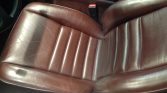 The cabin features Burgundy leather seats with power height adjustments as well as a matching dashboard, door panels, and carpets. Equipment includes power windows, air conditioning, a digital clock, cruise control, and an aftermarket Pioneer CD stereo.