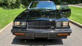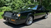 This 1987 Buick Grand National is powered by a turbocharged 3.8-liter V6 paired with a four-speed automatic transmission and finished in black over black and Sand Gray cloth. Equipment includes a limited-slip differential, 15″ chrome wheels, removable glass roof panels, a rear spoiler, a power-adjustable driver seat, air conditioning, cruise control, power windows, and a Delco AM/FM/cassette stereo.