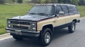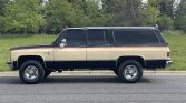 This 1987 Chevrolet Suburban 2500 Silverado 4×4 is finished in black and pale yellow over tan vinyl, and power is from a fuel-injected 350ci V8 paired with a four-speed automatic transmission and a dual-range transfer case. Equipment includes 16″ chrome-finished wheels, air conditioning, power steering, cruise control, upgraded audio, and power windows and locks. The truck was first registered in Tennessee and remained there until its acquisition in 2021 by the selling dealer. This Suburban 2500 is now offered in Wisconsin with a clean Carfax report and a clean Tennessee title.