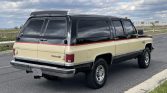 This 1987 Chevrolet Suburban 2500 Silverado 4×4 is finished in black and pale yellow over tan vinyl, and power is from a fuel-injected 350ci V8 paired with a four-speed automatic transmission and a dual-range transfer case. Equipment includes 16″ chrome-finished wheels, air conditioning, power steering, cruise control, upgraded audio, and power windows and locks. The truck was first registered in Tennessee and remained there until its acquisition in 2021 by the selling dealer. This Suburban 2500 is now…