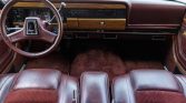 The cabin features power-adjustable front bucket seats trimmed in burgundy leather with cloth inserts along with a matching dashboard, rear bench, door panels, and carpeting. Amenities include air conditioning, cruise control, power accessories, and a cassette player.