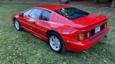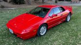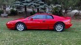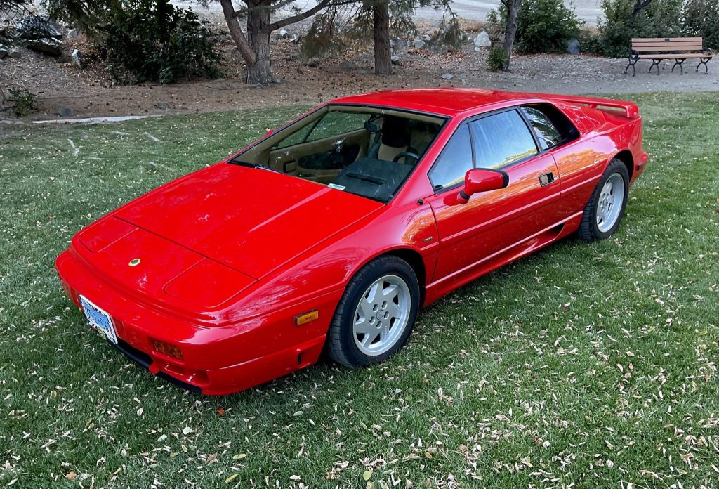 This 1991 Lotus Esprit Turbo SE is finished in red over two-tone black and tan leather and is powered by a turbocharged 2.2-liter inline-four mated with a five-speed manual transaxle. Equipment includes a removable fiberglass roof panel, air conditioning, staggered-diameter Lotus/OZ Racing wheels, and power door locks, windows, and mirrors, while modifications consist of a Pioneer CD stereo, JBL speakers, and a QuickSilver Sport exhaust system.