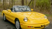 This 1992 Alfa Romeo Spider Veloce is finished in yellow over black leather and powered by a 2.0-liter inline-four paired with a five-speed manual transmission. Equipment includes a black soft top, a Sony cassette stereo, air conditioning, 15″ light alloy wheels, power windows, and body-colored mirror caps and bumpers. The car was first delivered to Springfield Imported Motors in New Jersey, and it remained in the state through its acquisition by the seller in March 2021. It now shows 20k miles, and recent service included an oil change and replacement of the spark plugs and clutch cylinders.