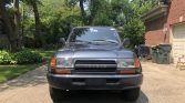 This 1994 Toyota Land Cruiser is said to have remained in the seller’s family since its purchase from Schaumburg Toyota of Schaumburg, Illinois, in 1994. The truck is finished in Blue Slate Metallic over gray leather and is powered by a 4.5-liter 24-valve inline-six paired with a four-speed automatic transmission, a dual-range transfer case, and three locking differentials. Additional equipment includes cruise control, a power-operated sunroof, air conditioning, a rear heater, keyless entry, remote start, and a Pioneer touch-screen stereo with navigation.