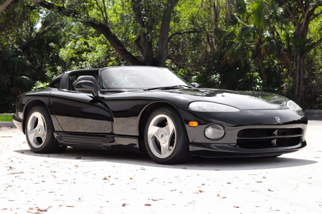 This 1995 Dodge Viper RT/10 was first registered in California and was acquired by the seller in May 2021. The car is finished in black over a gray leather interior and is powered by an 8.0-liter V10 linked with a six-speed manual transmission and a limited-slip differential. Additional equipment includes a removable soft top and side curtains, air conditioning, an AM/FM cassette stereo, a side-exit exhaust system, and 17″ chrome wheels. The oil was changed and the air conditioning system was reportedly serviced in preparation for the sale.