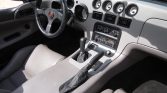 Chrome-finished 17″ tri-spoke wheels wear Viper-branded centers and are mounted with 275/40 front and 335/35 Michelin Pilot Sport tires. A spare is stored in the trunk. The car is equipped with power steering as well as independent suspension with unequal upper and lower control arms, and braking is handled by ventilated discs at all four corners.