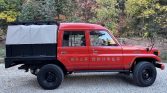 This 1995 Toyota Land Cruiser HZJ75 is a right-hand-drive example that was outfitted for fire service in Japan before it was imported to the US in 2021 and further modified. Finished in red over gray vinyl, the truck has a bed with removable side panels and a tan soft top along with a roof rack, a two-inch suspension lift kit, power steering, and 16″ steel wheels. Power is provided by a 4.2-liter 1HZ diesel inline-six fitted with a…