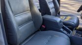 The cabin features power-adjustable front seats and a folding rear bench trimmed in graphite leather along with burl wood veneer accents on the matching dashboard, center console, and door panels. Amenities include air conditioning, cruise control, keyless entry, and a Kenwood CD stereo. Modifications include a removable subwoofer, aftermarket speakers, and a remote starter.