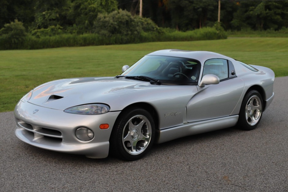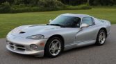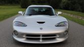 This 1998 Dodge Viper GTS was first registered in Arizona and spent time in Michigan prior to the seller’s acquisition in 2021. It is finished in Bright Silver Metallic over black leather and is powered by an 8.0-liter V10 paired with a six-speed manual transmission and a limited-slip differential. Equipment includes polished 17″ aluminum wheels, a custom audio system, and power windows and locks.