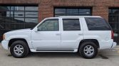 This 2000 Cadillac Escalade is finished in Aspen White over Neutral leather and is powered by a 5.7-liter V8 paired with a four-speed automatic transmission and a dual-range transfer case. Equipment includes heated seats, front and rear climate control, a Delco-Bose audio system, a video cassette player paired with a fold-down screen, headphone jacks, power aLessories, 16″ alloy wheels, tinted rear windows, fog lights, and roof rails. Recent service included rebuilding the alternator, recharging the air-conditioning system, and replacing the battery, drive belt, engine knock sensor, and an oxygen sensor as well as performing an oil change.