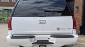 This 2000 Cadillac Escalade is finished in Aspen White over Neutral leather and is powered by a 5.7-liter V8 paired with a four-speed automatic transmission and a dual-range transfer case. Equipment includes heated seats, front and rear climate control, a Delco-Bose audio system, a video cassette player paired with a fold-down screen, headphone jacks, power aLessories, 16″ alloy wheels, tinted rear windows, fog lights, and roof rails. Recent service included rebuilding the alternator, recharging the air-conditioning system,…