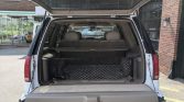 The SUV is finished in Aspen White and features body-color bumpers and trim, a chrome grille surround, and tinted rear windows along with fog lights, wind deflectors, running boards, a receiver hitch, and roof rails with cross bars.