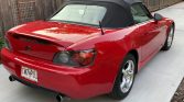 This 2000 Honda S2000 was purchased new by the seller from O’Neill Honda of Overland Park, Kansas, and is finished in red over black leather. The car is powered by a 2.0-liter VTEC inline-four paired with a six-speed manual transmission and a limited-slip differential. Additional equipment includes a power-operated black soft top, air conditioning, cruise control, an AM/FM/CD stereo, a Mugen cat-back exhaust system, front and rear spoilers, and 16″ five-spoke wheels.