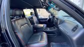 The cabin is equipped with heated and ventilated front seats with partial power adjustment, and they are upholstered in black leather with red piping. Additional equipment includes automatic climate control, a power-operated glass sunroof, and a Pioneer touchscreen with Bluetooth and a back-up camera display.