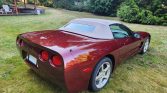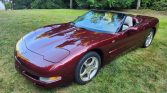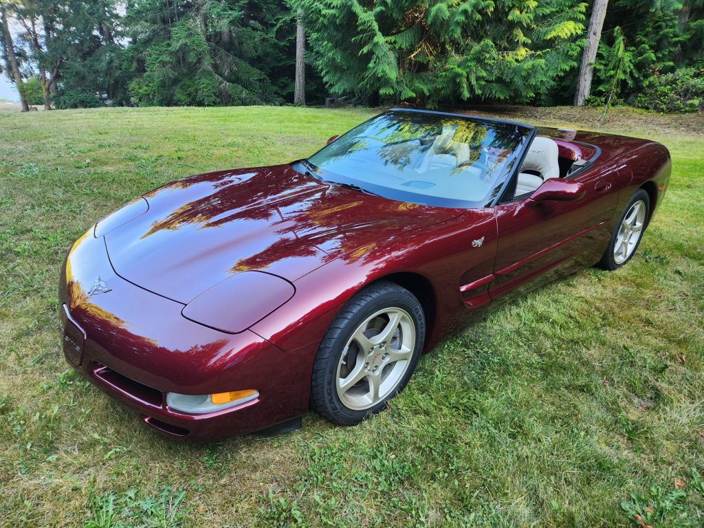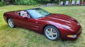 This 2003 Chevrolet Corvette is a 50th Anniversary Edition convertible is powered by a 5.7-liter LS1 V8 paired with a six-speed manual gearbox, the car is finished in 50th Anniversary Red Metallic over Shale leather. Equipment includes a Shale convertible soft top, Magnetic Selective Ride Control, 17″ and 18″ five-spoke wheels, a limited-slip differential, power-adjustable seats, a head-up display, dual-zone automatic climate control, and a Bose sound system.