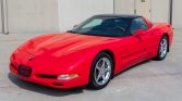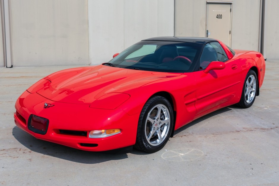 This 2004 Chevrolet Corvette is powered by a 5.7-liter LS1 V8 paired with a four-speed automatic gearbox and is finished in Torch Red over black and Torch Red leather. Equipment includes two removable roof panels, 17″ and 18″ polished five-spoke wheels, a limited-slip differential, dual-zone automatic climate control, a Bose sound system, and traction control.