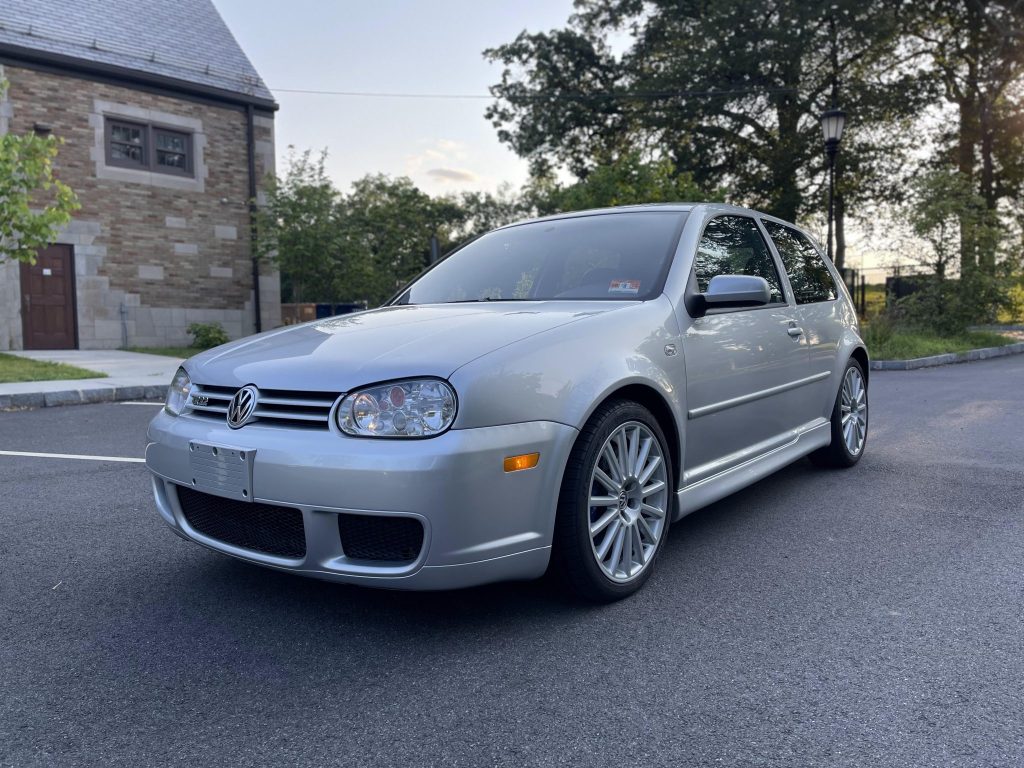 This 2004 Volkswagen R32 is finished in silver over black leather and is powered by a 3.2-liter VR6 paired with a six-speed manual transaxle and a 4Motion all-wheel drive system. Equipment includes 18” Aristo wheels, a sunroof, automatic climate control, heated Konig front seats, and a cassette/CD stereo with a Monsoon sound system.