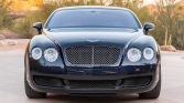 This 2005 Bentley Continental GT is finished in dark blue over cream leather and is powered by a twin-turbocharged 6.0-liter W12 paired with a six-speed automatic transmission and all-wheel drive. Equipment includes headlight washers, 19” wheels, heated and power-adjustable front seats, dual-zone automatic climate control, a navigation system, wood trim, and paddle shifters.